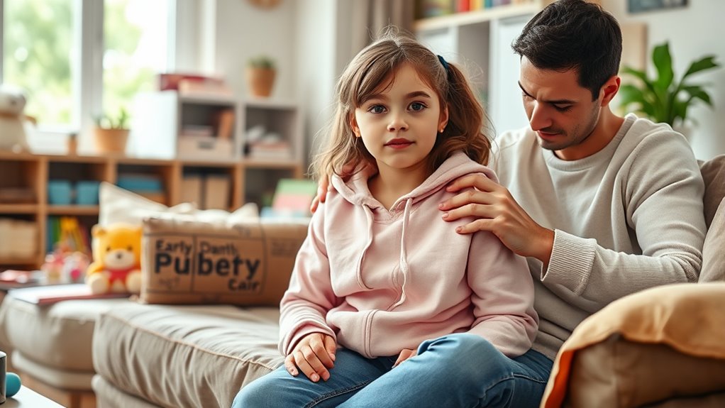 Early signs of puberty, such as growth spurts, development of secondary sexual characteristics, or body odor, may appear before age eight in girls and before age nine in boys. Recognizing these signs early can help you determine if your child is experiencing typical or early puberty. The social implications can be significant because children who develop earlier often struggle with feeling different from their peers. They might try to hide their physical changes or feel embarrassed, which can isolate them socially. Additionally, early puberty can sometimes lead to emotional challenges, like increased mood swings or anxiety, further complicating their social life. As a parent or guardian, it’s essential to be supportive and understanding during this time, helping your child navigate these changes with reassurance and care.