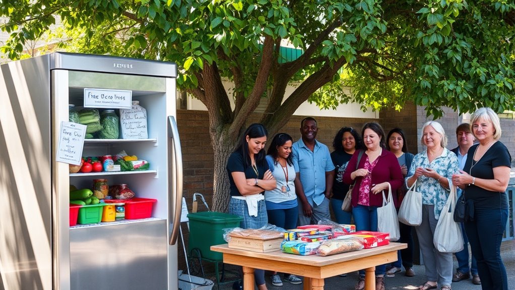 If you’re interested in volunteering, check with local food banks or community fridge programs for specific opportunities. Some places need help on weekends or during evening hours, so you can choose a time that fits your schedule. Your presence can make a real difference, whether you’re helping to stock shelves, organize donations, or assist clients directly. Beyond volunteering, many community fridges operate on a donation basis, so you can also contribute food or funds to sustain these crucial resources. Donating perishable and non-perishable items ensures that food pantries and community fridges can continue to serve those in need. Additionally, understanding food insecurity can help you better support and advocate for these vital community programs.