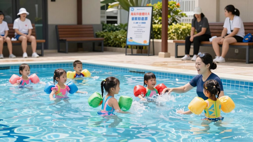 Qualified instructors are the cornerstone of effective budget swim lessons, ensuring that students learn water safety skills safely and confidently. Look for programs with certified instructors who have completed recognized water safety certification. Certified instructors bring verified expertise, which helps you trust that your child is learning proper techniques and safety measures. They understand how to teach skills in a clear, encouraging way, fostering confidence in students of all ages. Water safety certification indicates that instructors meet industry standards and possess the necessary knowledge to teach safe swimming practices. When choosing a program, prioritize those with properly certified staff, as this guarantees quality instruction and enhances your child’s safety in the water. Skilled, certified instructors are essential for developing real water safety skills effectively and affordably. Proper training methods further ensure that lessons are delivered safely and effectively, supporting long-term water safety. Additionally, well-trained instructors use effective teaching techniques that adapt to different learning styles, making safety skills more accessible for everyone. Understanding industry standards in instructor certification can give you added confidence in your choice. Recognizing the importance of instructor qualifications can help you select the most reliable program for your child’s water safety education. Moreover, programs that emphasize ongoing professional development for instructors tend to maintain high teaching standards and stay current with best practices.
