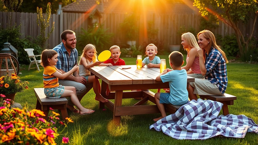 You can boost family bonding by engaging in outdoor adventures like hiking, biking, or picnicking, which create shared experiences and lasting memories. Creative crafts, such as painting, building models, or making DIY gifts, foster teamwork and spark everyone’s imagination. These activities encourage meaningful interactions, help you disconnect from screens, and strengthen your family bond through fun, hands-on involvement. Embrace these activities to enjoy quality time together.