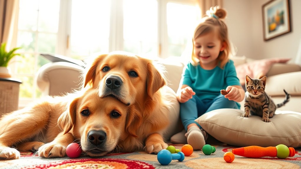 Pets play a essential role in shaping your child’s emotional development. They help your child build emotional resilience by providing comfort during tough times and encouraging empathy through caregiving. Pets also boost social skills, as children learn to communicate, share, and be responsible. By fostering these qualities, pets help your child develop a balanced emotional outlook, preparing them for healthier relationships and better coping strategies in life.