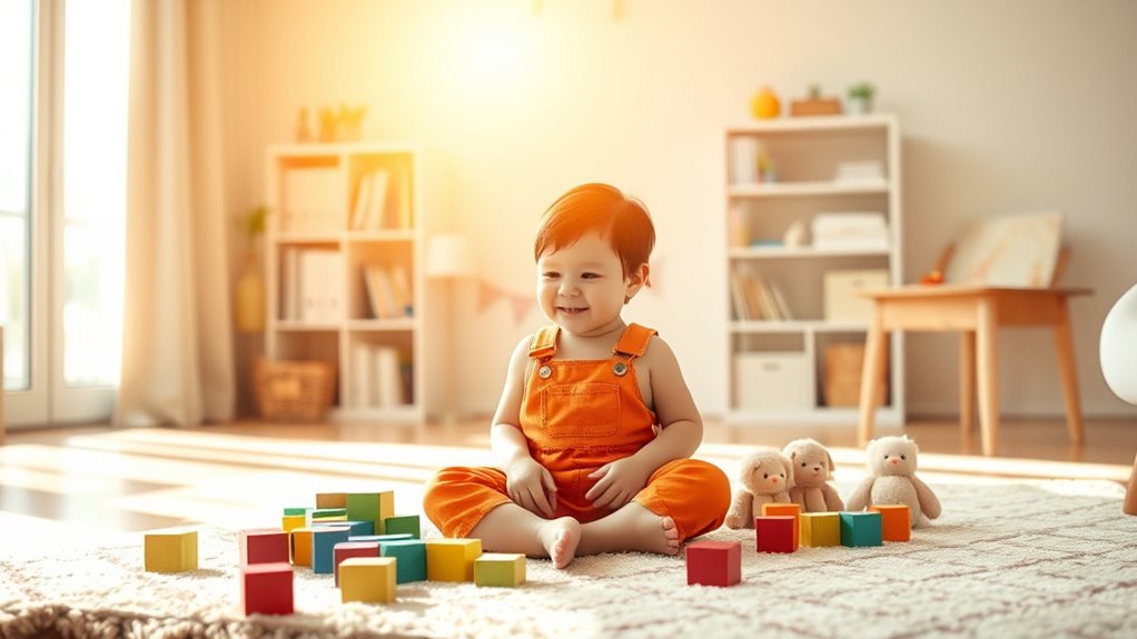 A wise saying goes, “The right tools make all the difference.” For safe, engaging independent play, choose age-appropriate toys and sensory toys that suit your child’s development. Look for sturdy, non-toxic options without small parts to prevent choking. Sensory toys like textured balls or soft blocks stimulate their senses and keep them entertained. Always supervise play to ensure safety, and rotate toys to keep their interest alive.