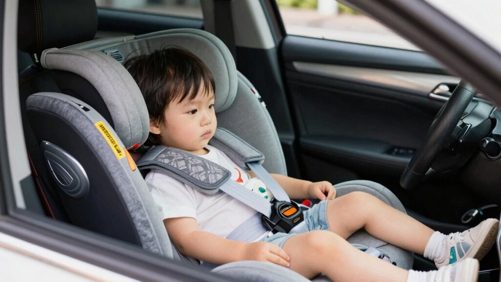 Are LATCH systems and seat belts truly compatible with your vehicle and your child’s size? Vehicle compatibility varies, so check your car’s manual to see if it supports LATCH anchors or requires seat belts for installation. Some vehicles may have limited LATCH points or specific weight limits, affecting how you install your child’s car seat. Child size considerations also matter; for smaller children, certain seats or harness positions might be more suitable. Verify the car seat fits your child’s height and weight, and confirm that your vehicle’s anchorage system can accommodate it safely. Always follow manufacturer guidelines to guarantee proper installation. Compatibility isn’t just about your vehicle—it’s about ensuring your child’s safety at every size and stage.