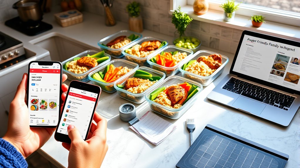 Think of your favorite captain steering a storm—tools like grocery list apps and meal prep calendars act as your compass. These apps help you organize shopping, plan meals efficiently, and stick to your budget. With features like customizable lists and scheduling, you stay on course even on busy days. Using these tools makes meal planning smoother, saving you time and money while keeping your family’s nutrition on track.