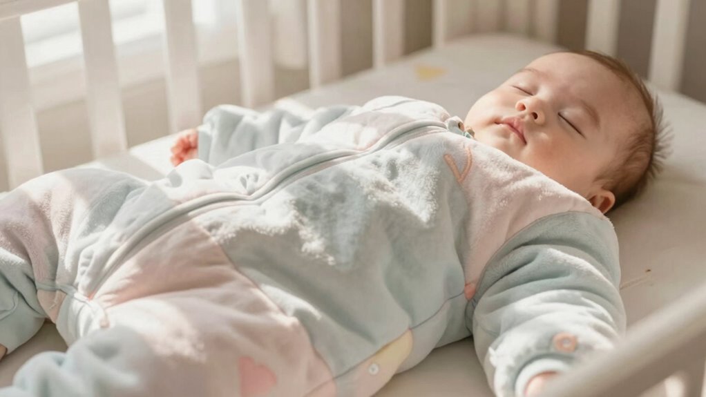 A sleep sack should fit snugly enough to keep your child safe, but it also needs to allow enough room for natural movement. If your little one can wiggle their arms and legs comfortably, they’ll be less likely to feel restricted, which supports smoother sleep training. Avoid forcing them into tight baby pajamas or overly restrictive sleep sacks, as this can hinder their ability to move freely. During sleep, your child should be able to stretch, kick, and turn without feeling constricted. This freedom of movement helps prevent restless nights and encourages healthy sleep patterns. Ensuring proper fit isn’t just about safety; it’s about creating a comfortable environment that promotes restful sleep and supports your child’s development.