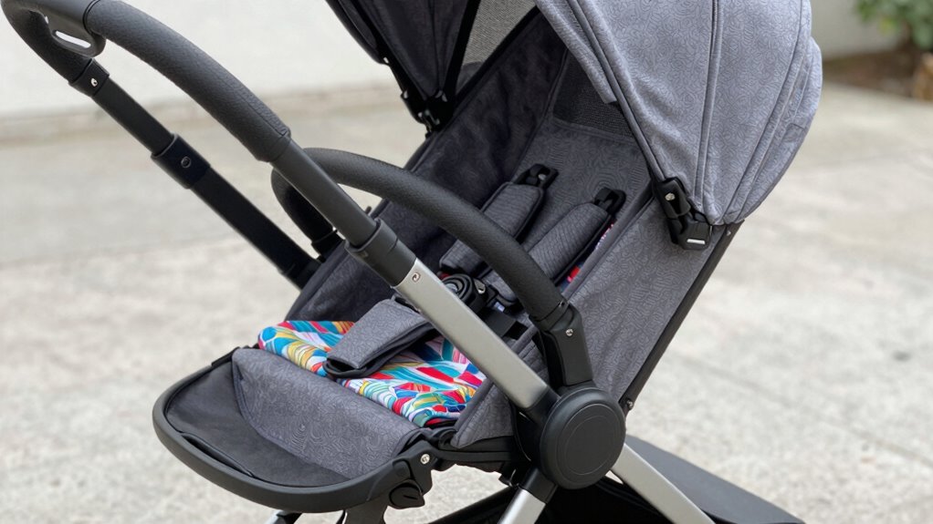 This feature can subtly influence your stroller’s weight and portability concerns. While it might not seem significant initially, over time, wear and tear could weaken it, potentially adding weight or making the stroller less portable. You’ll want to stay vigilant, inspecting it regularly. If it’s compromised, it could tip the balance, making your stroller harder to carry or maneuver. Staying attentive guarantees your stroller remains lightweight and easy to transport.