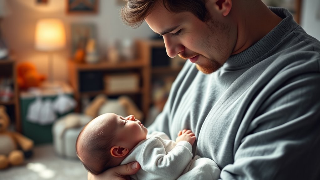 As a new dad, your support is essential in helping your partner recover and bonding with your baby. Encourage her rest, assist with chores, and prioritize nutritious meals. Be emotionally present and listen actively, offering reassurance and patience. Engage in skin-to-skin contact, participate in caregiving routines, and celebrate small milestones together. Mindfulness and proactive involvement foster a stronger connection. Keep exploring ways to support effectively, and you’ll build a confident, nurturing foundation for your family.