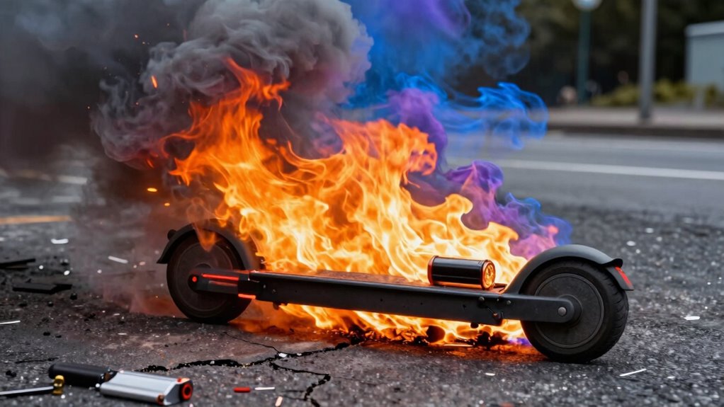 While EV battery fires are rare, understanding the risks helps you stay safe. Did you know that less than 0.01% of electric vehicles experience a fire annually? By staying informed about battery safety tips and choosing reputable brands, you can enjoy the benefits of e-mobility with confidence. Remember, ongoing advancements in battery technology promise even safer rides in the future, making your journey not only eco-friendly but secure too.