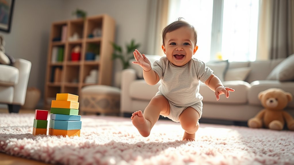 As your child masters new motor skills, you’ll see their curiosity blossom. They start to explore more actively, reach for objects, and even experiment with their own body movements. Celebrating these achievements, no matter how small, boosts their motivation and self-esteem. Remember, every child develops at their own pace, so patience and encouragement are key. Additionally, incorporating natural materials and eco-friendly toys into play can enhance their sensory experiences and support sustainable development. By fostering their language development and motor skills through daily interactions and safe exploration, you’re helping your toddler build a strong foundation for future milestones. Watching them take those first steps or say their first meaningful words is a reminder of how incredible this early stage of life truly is.