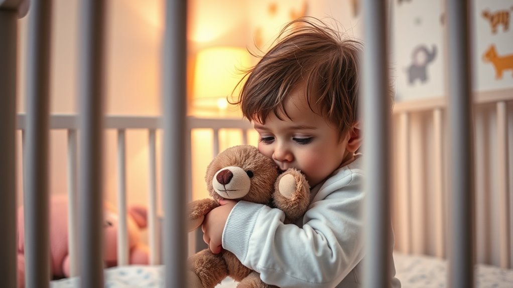 When managing bedtime battles with a toddler experiencing separation anxiety, you should offer a comfort object like a stuffed animal or blanket. Maintain a consistent routine each night to create a sense of security and predictability. Reassure your child with gentle words, stay calm, and avoid rushing. Over time, these strategies help your toddler feel safer and more comfortable, easing separation anxiety and making bedtime smoother for both of you.