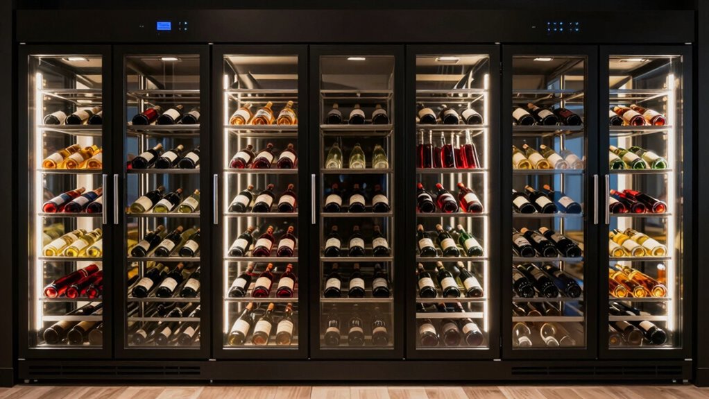 Did you know that energy-efficient wine coolers can save you up to 30% on electricity bills? I find that 46-bottle dual zone wine coolers are quite efficient, thanks to modern insulation and compressor technology. They use less energy than older models while maintaining perfect temperatures. So, if you’re mindful of energy use, these coolers are a smart choice, providing great storage without hefty power consumption.