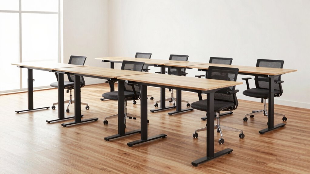 Choosing the right adjustable height range for a 60-inch electric standing desk is essential because it directly affects your comfort and usability. A wider height range, like 27 to 48 inches, offers flexibility for different tasks and user heights. This ensures you can sit comfortably at lower settings and stand tall without strain at higher ones. It’s important to select a desk whose minimum height suits seated work, especially if you spend a lot of time sitting. Conversely, the maximum height should be comfortable for taller users and provide enough clearance for ergonomic standing. Matching the height range to your specific height and workspace setup helps promote healthier movement habits and reduces discomfort. Ultimately, an appropriate height range makes your workspace adaptable and more functional.