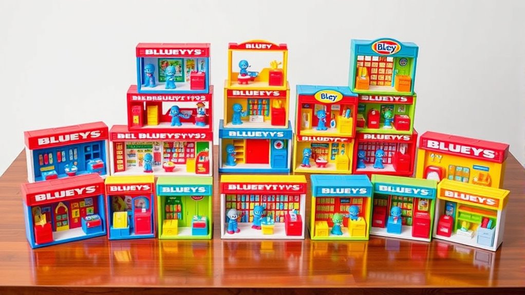 Did you know that over 90% of parents trust toy safety standards? These Bluey supermarket playsets include features like rounded edges, non-toxic paints, and sturdy construction, ensuring safe play. I love how they’re designed with safety in mind, so kids can explore and imagine freely without worry. Plus, they meet or exceed all safety regulations, making them a reliable choice for family fun.