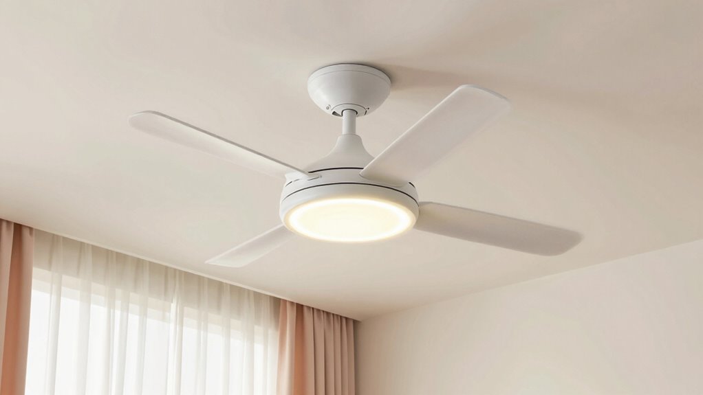 Choosing the perfect ceiling fan for your nursery isn’t just about cool air — it’s about creating a peaceful haven. Imagine a gentle breeze whispering lullabies, turning your space into a serene sanctuary. With the right fan, like the Amico 42″, you’ll enjoy quiet comfort and safety, making bedtime a breeze. After all, isn’t a quiet nursery the sweetest song of all? Your little one’s peaceful sleep is just a fan away.