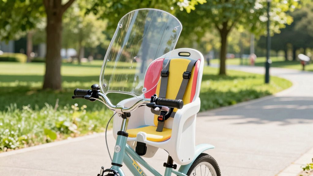 Did you know that a windshield can reduce wind noise and debris by up to 70%? I’ve found that windshields greatly enhance a child’s comfort and safety by shielding them from harsh weather, bugs, and flying objects. They also help keep the child’s face protected, making rides more enjoyable. I always recommend a seat with a windshield because it creates a safer, calmer environment for young riders.