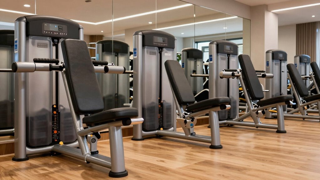 Choosing a durable leg press machine means paying close attention to the quality of its materials and construction. High-quality machines are built from heavy-duty steel, like 11-gauge or 2mm thick steel, which guarantees they withstand heavy use over time. The use of wear-resistant and anti-slip materials, such as premium leather padding and diamond-plated footplates, boosts safety and longevity. Reinforced frame designs, like triangular supports, offer increased stability, especially under heavy loads. Protective coatings, such as powder coating or industrial paint, shield the machine from rust and environmental damage. Additionally, robust internal components, including linear bearings and thick guide rods, enable smooth, consistent movement while reducing wear. Focusing on these factors guarantees a machine that remains reliable and safe for years to come.