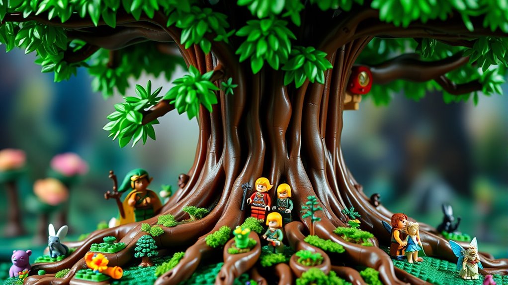 If you’re looking to bring your Lego Zelda Great Deku Tree set to life, I suggest checking out some awesome options like LED light kits from YEABRICKS, BrickBling, or DIY acrylic display cases to showcase your build. These accessories enhance detail and protect your set, making it stand out. There are also various related sets like the Nifeliz Bonsai Tree for added decoration. Keep exploring to discover the top picks that will elevate your fantasy collection.