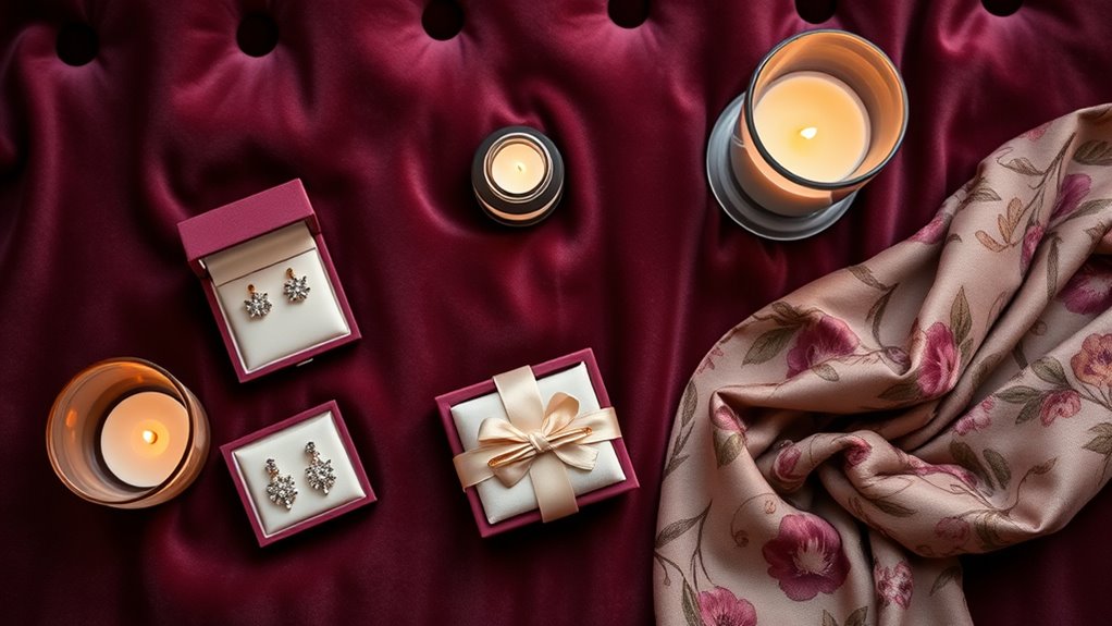 Choosing the right moment to give a luxury gift can make all the difference in how she perceives it. Timing the presentation to match the occasion adds emotional weight, whether it’s a milestone like a birthday or anniversary, or a holiday like Christmas or Valentine’s Day. For special events, select gifts that symbolize growth or shared memories, making the moment more meaningful. Seasonal occasions often call for festive packaging or themed products that enhance the holiday spirit. Sometimes, an unexpected surprise on an ordinary day can be just as impactful, showing thoughtfulness. Planning ahead guarantees the gift arrives or is given at the perfect time, maximizing its significance and making her feel truly appreciated. The right timing elevates a thoughtful gift into a heartfelt gesture.