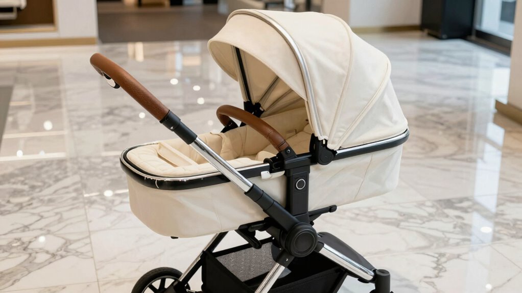 A reversible seat adds a layer of versatility that makes a luxury stroller with a bassinet more adaptable to different needs. It allows me to face my baby toward me for bonding or outward for visual stimulation, depending on their mood. This flexibility makes changes quick and easy, whether my child wants to nap or observe surroundings. I also find it helpful for monitoring my baby’s health and safety during outings without much fuss. Facing the parent provides a sense of security, especially in early infancy, helping my little one feel more comfortable. Additionally, adjustable positions in reversible seats let me customize comfort for various activities. Overall, this feature enhances both convenience and emotional connection, making the stroller more practical for everyday use.