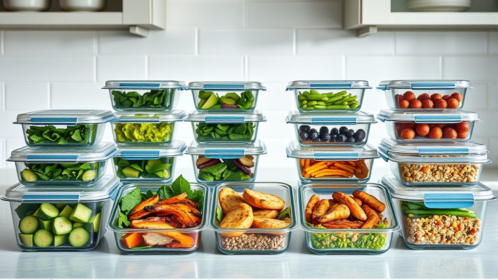 If you’re looking for the best glass meal prep containers for healthy eating in 2025, I recommend options that are durable, safe, and versatile. Look for containers made from high-quality borosilicate or tempered glass, with airtight seals and leakproof lids. Features like stackability, different sizes, and easy cleaning are also key. If you keep exploring, you’ll discover the top choices that blend safety, convenience, and sustainability for your meal prep needs.