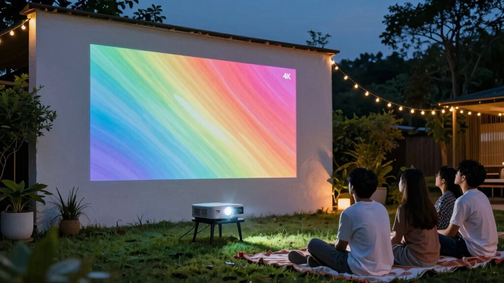 If you’re considering upgrading to a 4K outdoor projector, you’re joining a growing trend—over 65% of outdoor entertainment enthusiasts now prefer 4K for its crisp visuals. With options like Dolby sound, Wi-Fi, and portable designs, there’s something for everyone. Investing in the right projector can truly transform your outdoor movie nights into cinematic experiences. So, choose wisely, and get ready to enjoy stunning clarity under the stars!