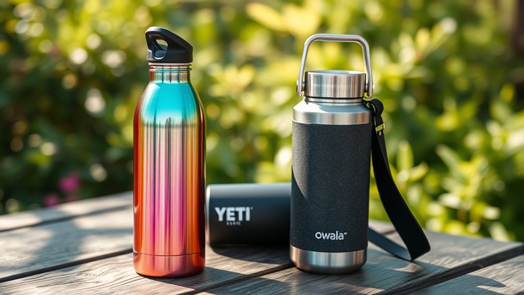 Imagine drinking from bottles that not only keep your drinks cold but also protect our planet. Both Owala and Yeti prioritize sustainability; Owala uses eco-friendly materials like BPA-free plastics, while Yeti incorporates recycled stainless steel in some models. It’s like choosing between two heroes fighting for a cleaner earth. I love knowing my hydration choices support sustainability, making both brands a smart pick for eco-conscious consumers.