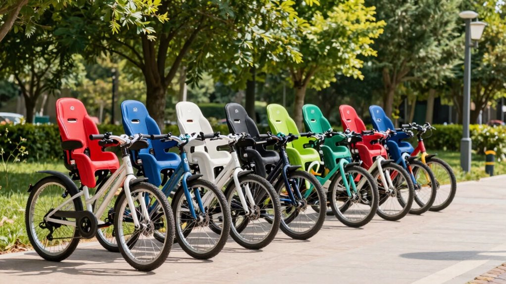 You might think all bikes can handle rear mount child seats, but that’s not always true. I’ve found they’re most compatible with standard mountain or hybrid bikes, while some road or vintage bikes might need special adapters. Always check your bike’s frame and mounting points first. It’s a coincidence how the right fit creates a seamless ride, reminding us that safety and compatibility go hand in hand for a smooth, enjoyable journey.