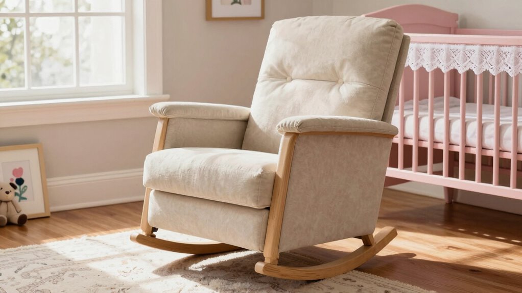 If you’re searching for the 15 best rocking chairs for nurseries in 2026, I’ve got you covered with top options that blend comfort, durability, and style. From swivel glider models with pockets to plush upholstered options, these chairs are designed to support you during those precious moments with your baby. Keep exploring, and you’ll find detailed insights to help you pick the perfect nursery companion.