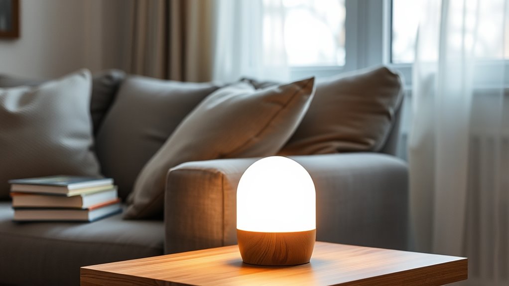 When selecting a sad lamp, I look for one with a compact and lightweight design that’s easy to move around my home or take along when I travel. A portable lamp with a detachable stand or wall-mounting option offers flexible placement, fitting various spaces and preferences. Slim, tablet-like shapes and foldable components help save space and make storage effortless when not in use. Many portable lamps come with adjustable stands or rotatable bases, allowing me to customize the angle for ideal light therapy. Sleek designs with neutral finishes also make the lamp blend seamlessly into my home or office decor. Overall, a well-designed, portable sad lamp simplifies my routine and ensures I can enjoy effective light therapy wherever I am.