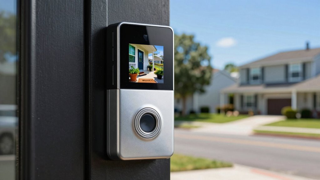 While prioritizing security is vital, it’s equally important to take into account the overall value of a video doorbell, which includes price and warranty coverage. You should consider the total cost, including the initial purchase, optional cloud storage, and maintenance expenses. Check how long the manufacturer’s warranty lasts—longer warranties mean better protection against defects and repairs. Make sure the warranty covers both hardware and software issues for exhaustive coverage. Also, review whether it protects against weather damage, vandalism, or accidental falls, which are common outdoors. Finally, verify if local storage options like microSD cards are included or if you’ll need to pay extra, as this impacts the overall value. Balancing cost and warranty coverage helps guarantee a smart investment.